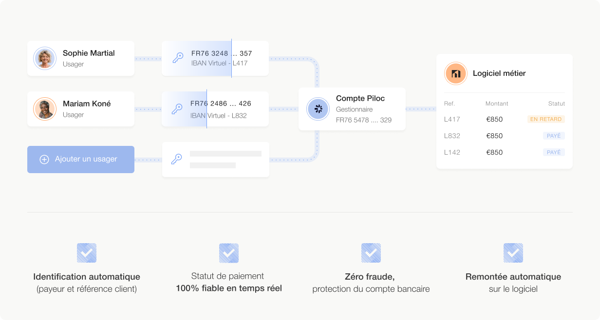 Chaque virement est désormais identifié automatiquement via un IBAN nominatif, garantissant un rapprochement sans saisie manuelle.